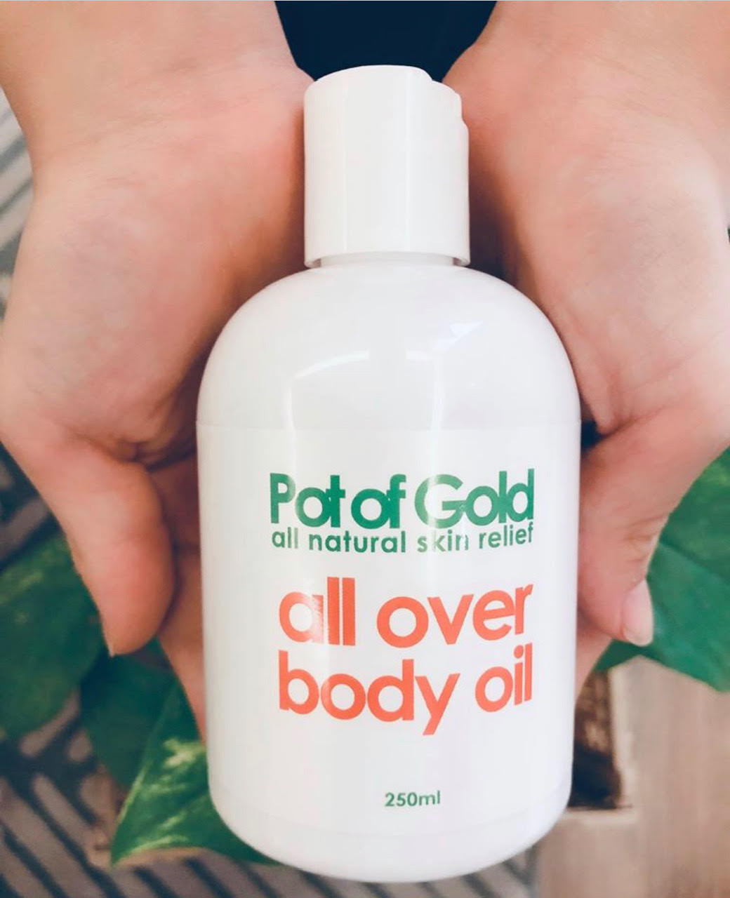 Pot of Gold all over body oil is the perfect all-in-one oil for hair, body and nails. Specially blended from a lite olive oil base and formulated with vitamin A and E, our all over body oil helps to retain moisture while antioxidents help to reverse UV and environmental damage.